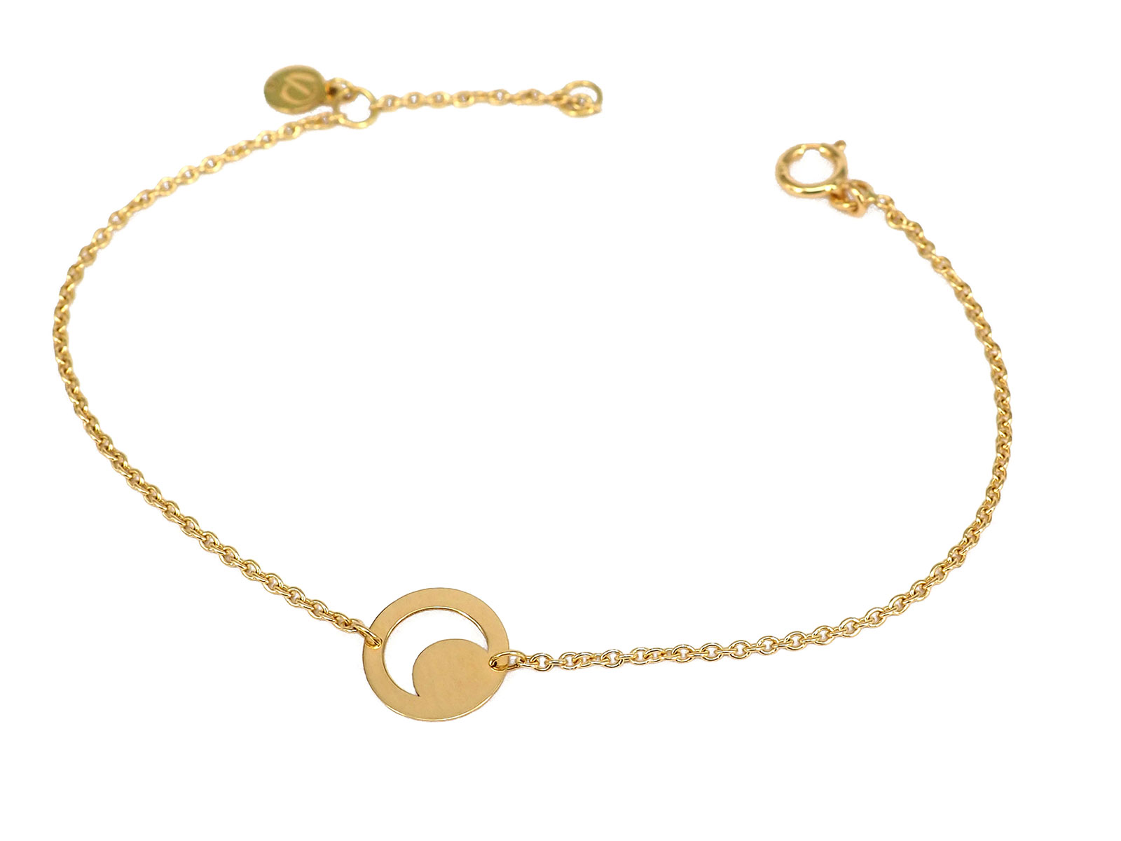 Pulsera con Cadena y Placa con Luna calada de Oro de 18K